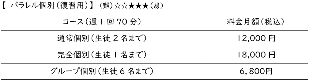 個別コース生で英語を受講している場合はパラレル復習個別で英語を、